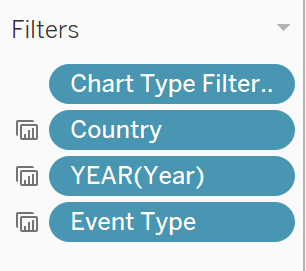 3.4 Three filters ‘Year’, ‘Event Type’, ‘Country’ give reader free space to choose what they want to analysis.