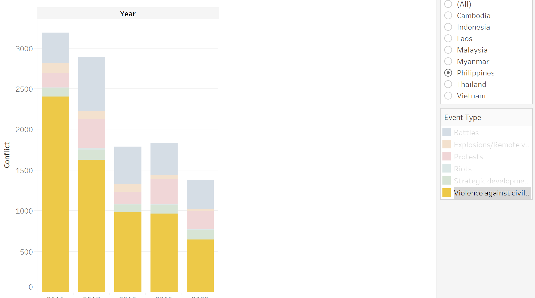 However, from the bar below, we can see that ‘Violence against civilians’ in Philippines has a descending trend these years.
